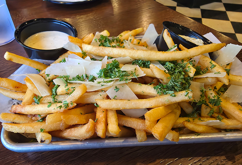 - $7 sharable appetizers (Brussel sprouts, pretzel bites, pierogis, cheese curds, chips and salsa and truffle fries)